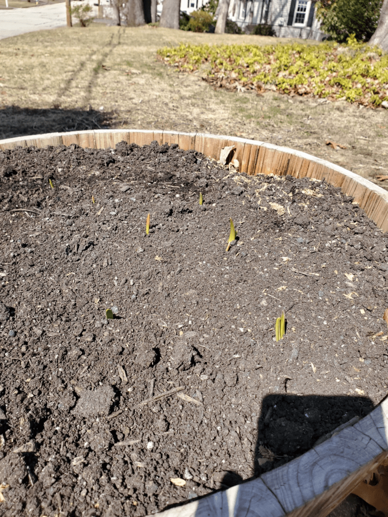 Garlic is sprouting! Perennials herbs are coming in! Bulbs are turning green! Below are two of the most exciting pictures thus far this year. We are getting garlic sprouts. Its happening. For those of you who don’t know I go through at least 2 garlic bulbs per week so garlic is no joke in this household. We are also hoping to get some garlic to sell at the farmers market.